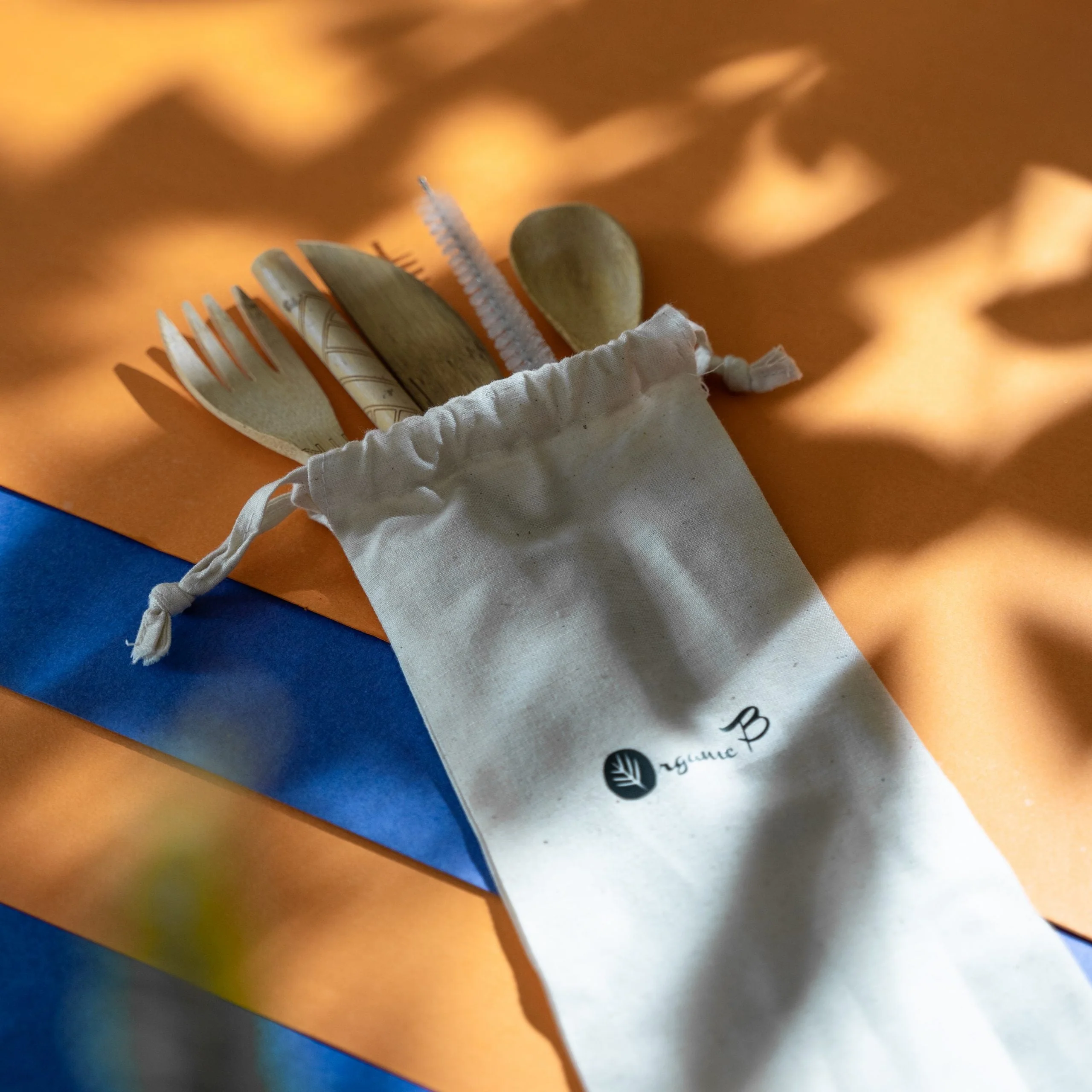 Organic B Mao Bamboo Cutlery Set | Spoon + Fork + Knife + Straw & cleaner