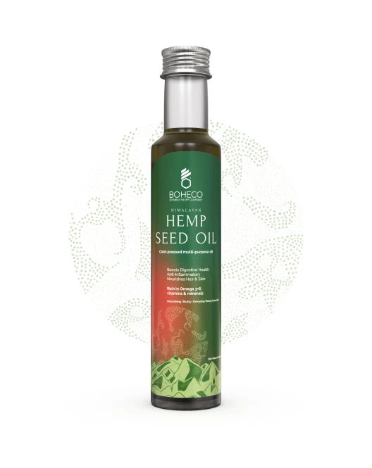 "HIMALAYAN HEMP SEED OIL is cold-pressed hemp (Vijaya) seeds oil rich in omega fatty acids, antioxidants, vitamins & minerals. It helps boost digestive health & nourishes hair & skin.